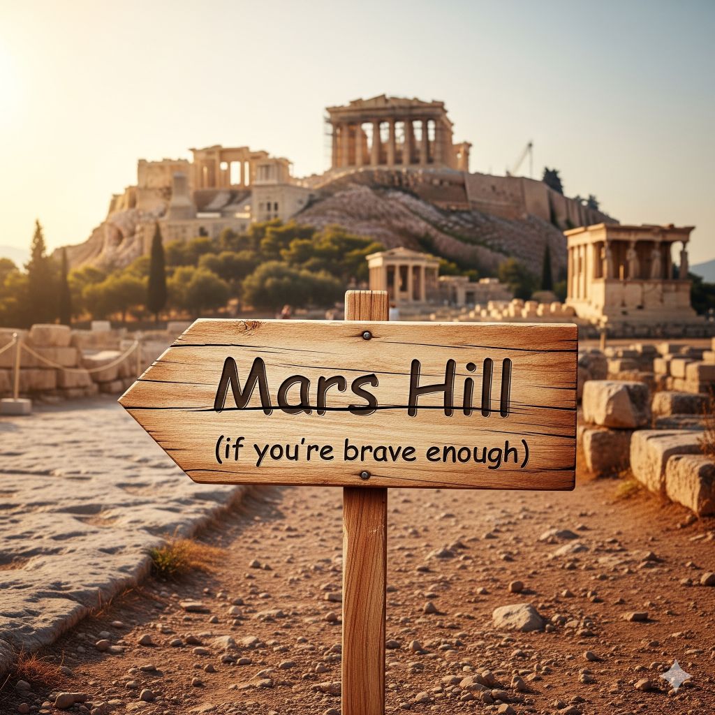 Paul is trying to have a conversation with the intellectuals of his day, Mars Hill was the place to do it. It was going to be a spiritual battleground. Anywhere we share about Jesus in this world is a spiritual battleground.